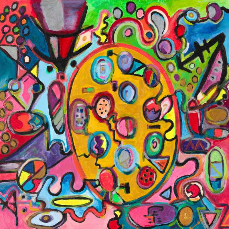 The traditional principle or golden rule of working in 3rds is not followed within this art piece. It might seem a challenging aspect, however, the artist has defied this and created the Golden Egg at the centre of the canvas, giving expression to the numerous shapes and colours that surround it. The Golden Egg is a symbol of the ideas, thoughts, words and actions we give birth to, and how those beliefs, actions and ideas shape our world. The Golden Egg represents purposefulness and allows the viewer an opportunity to reflect on what they have created within their own physical, mental, emotional and spiritual body.